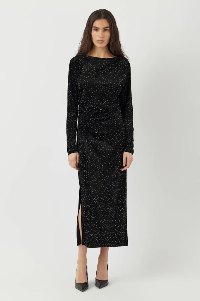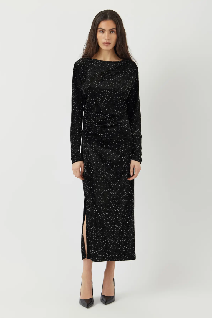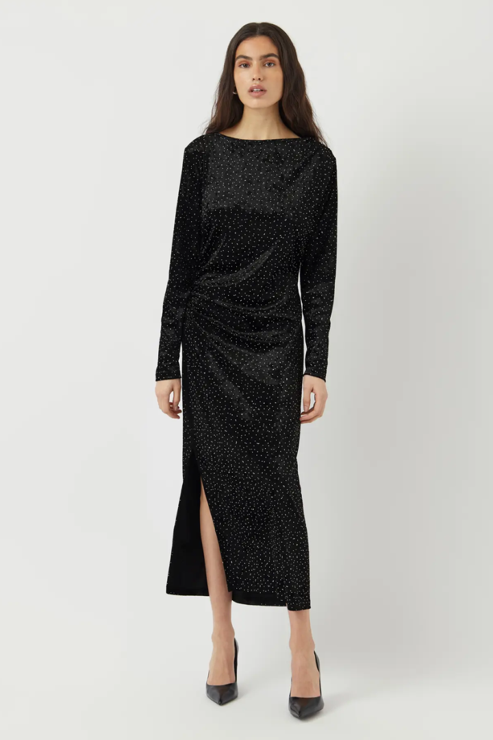 Elevate your special occasions with the Tillia Velvet Dress. Crafted from luxuriously soft velvet, this long-sleeved design features a graceful round neckline and subtle rhinestone accents that add understated elegance. The comfortable regular fit ensures you can move with confidence throughout your celebration, while the refined silhouette keeps you looking polished and put-together. Perfect for those moments when you want to feel both beautiful and at ease.