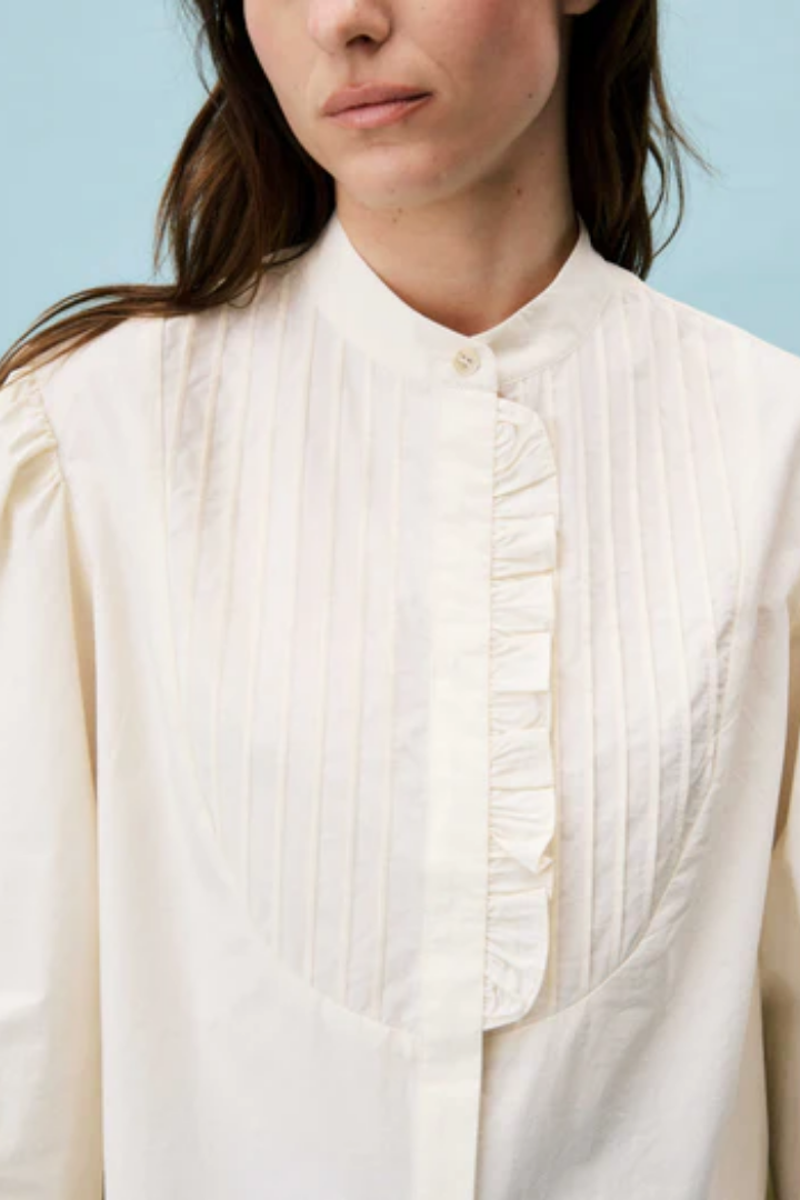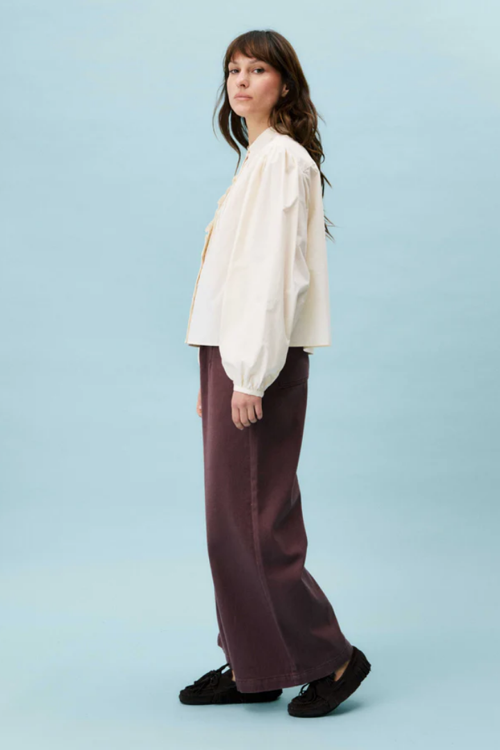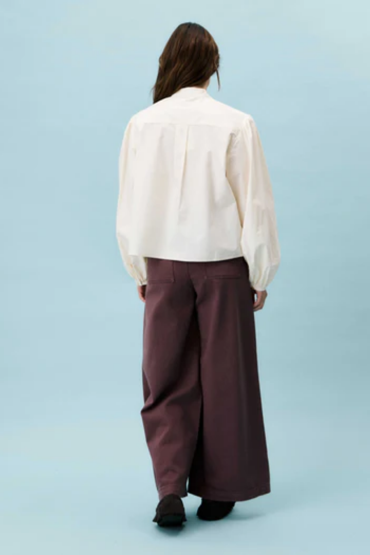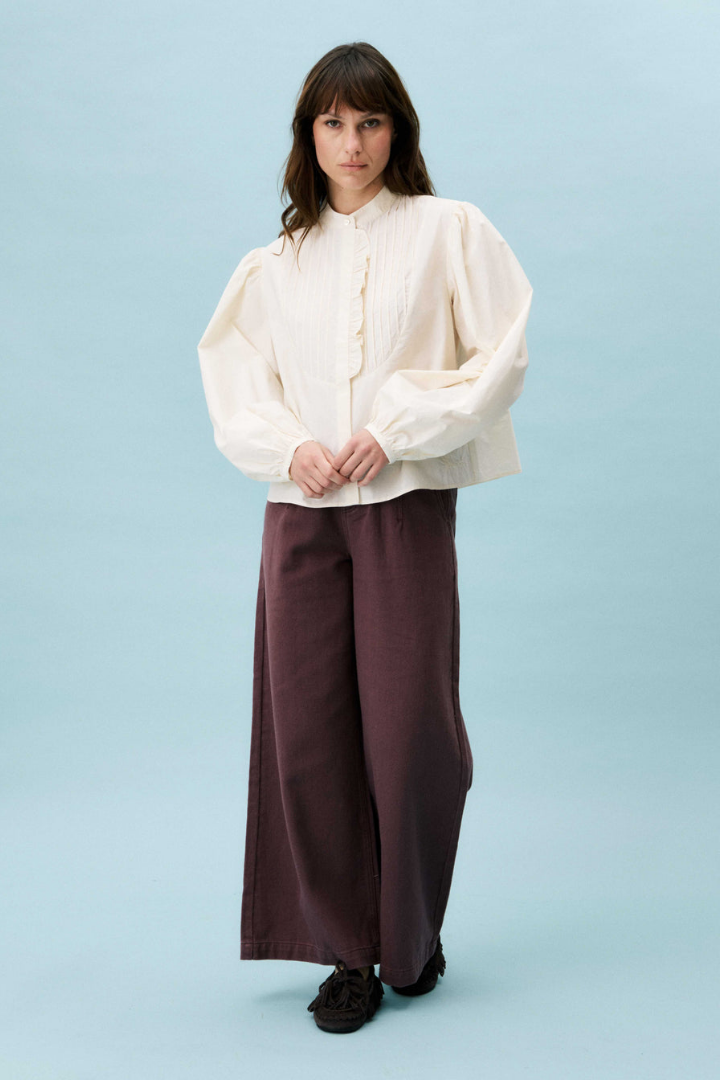The Ipomee Blouse brings effortless elegance to your everyday wardrobe. Crafted from breathable 100% cotton, this piece features distinctive long balloon sleeves that add a touch of romantic flair, paired with a charming ruffled buttonhole for added texture and interest. The structured Mao collar completes the sophisticated silhouette, making it perfect for layering or wearing solo. Comfortable, versatile, and beautifully detailed—a wardrobe essential that works as hard as you do.