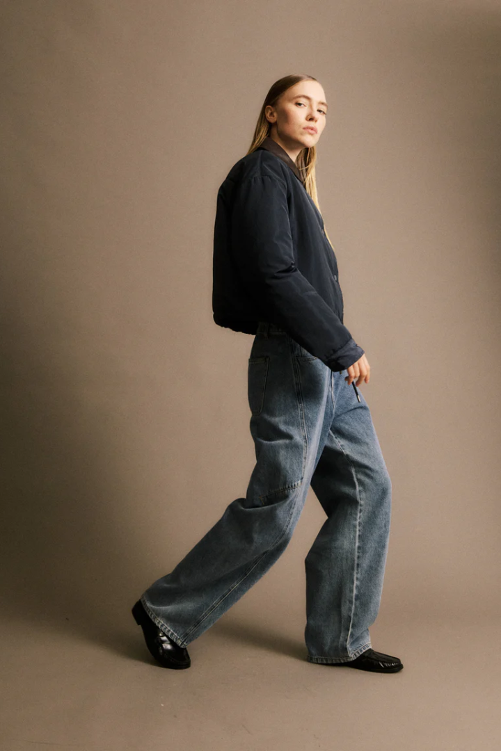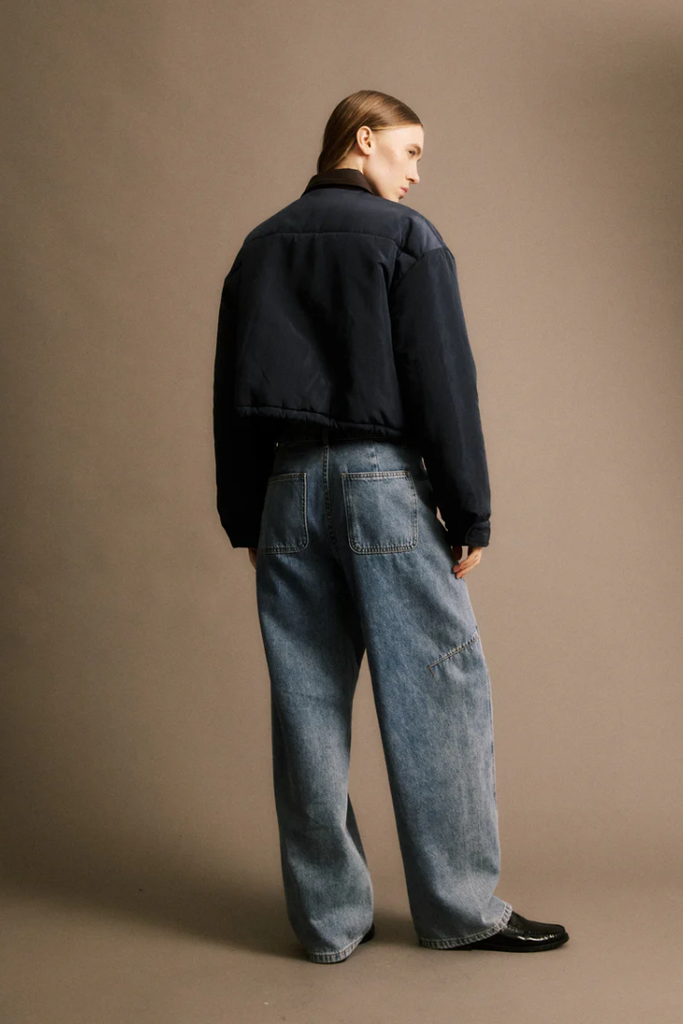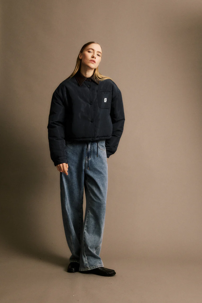 The Alixe Short Jacket offers a stylish yet practical choice for cooler days. Crafted in navy blue quilted fabric with a contrasting brown collar, it features long sleeves and a chest logo for subtle branding. Practical snaps allow easy closure, while an adjustable drawstring inside ensures a comfortable, tailored fit. Perfect for layering with confidence and warmth.