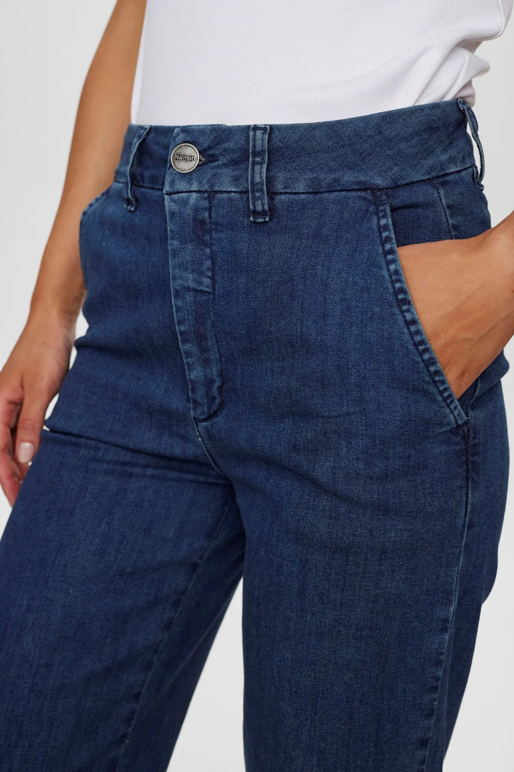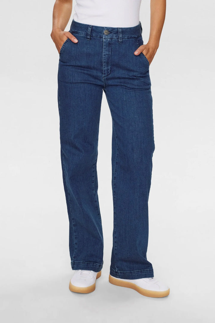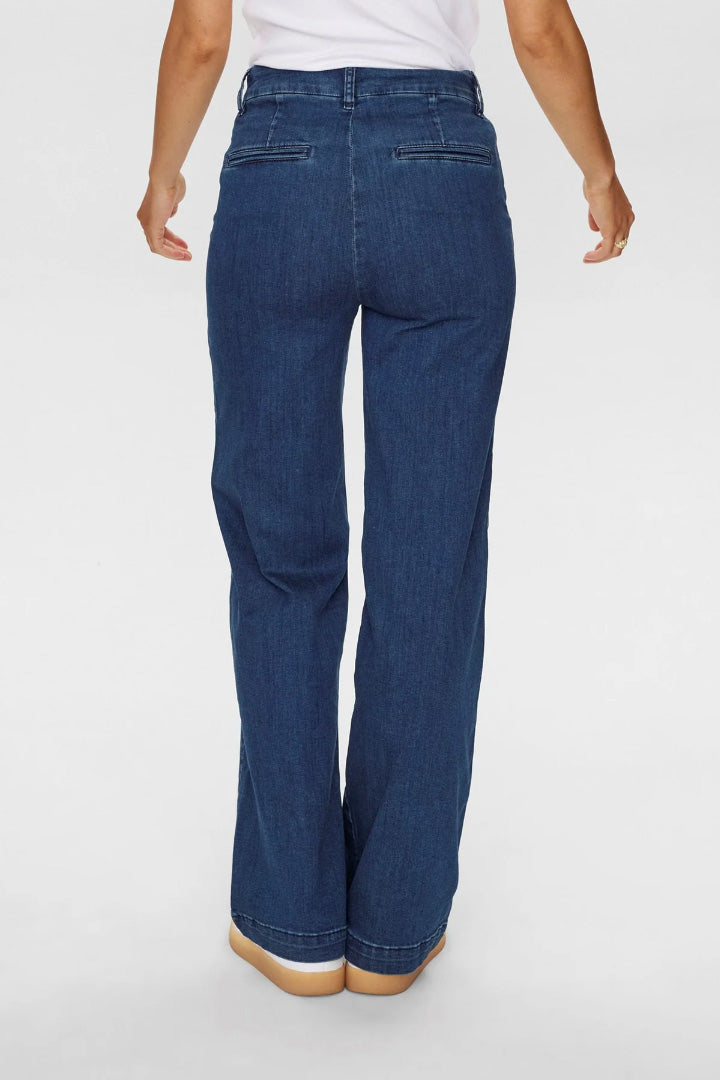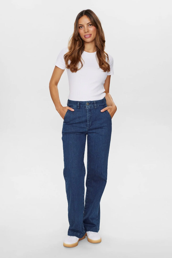 Enjoy effortless style with our Amber Denim Jeans. Featuring a wide leg and high waist, these jeans provide a flattering fit and comfortable wear. Elevate your wardrobe with this versatile piece that can be dressed up or down for any occasion.