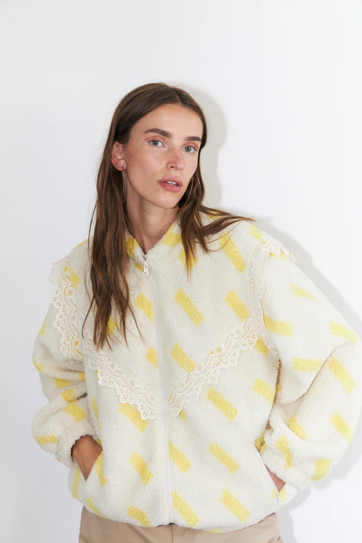Embrace warmth and style with our Fall Long Sleeve Jacket, where comfort meets contemporary design. Crafted from luxuriously soft teddy fabric, this piece features charming yellow accents and delicate lace detailing that elevate your everyday look. The thoughtfully designed silhouette offers a feminine touch while maintaining the cozy feel you'll love reaching for throughout the seasons. Whether you're layering for cooler days or styling it as a standalone piece, this jacket effortlessly transitions from casual outings to relaxed social moments. A versatile wardrobe essential that celebrates both comfort and confidence.
