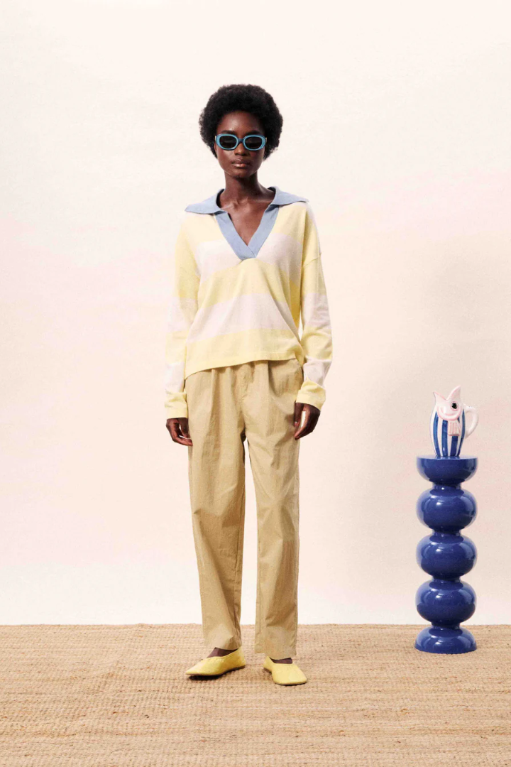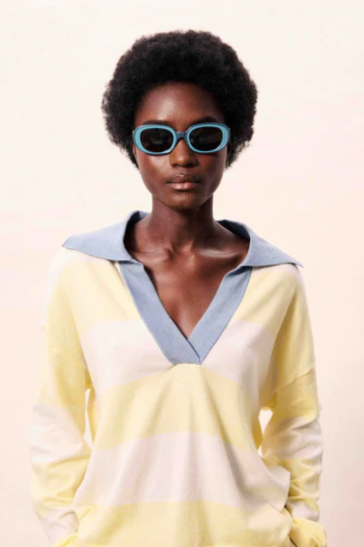 Embrace vintage style with the Hydralis Jumper, a striped polo sweater that brings retro-sporty charm to your everyday wardrobe. Crafted from a soft cotton blend knit, this piece features a relaxed, straight cut with a slightly loose fit for comfortable all-day wear. Bold wide stripes and a contrasting open polo collar create eye-catching visual interest, while long sleeves offer versatile layering options. Perfect for those who appreciate classic sportswear aesthetics with a modern twist.