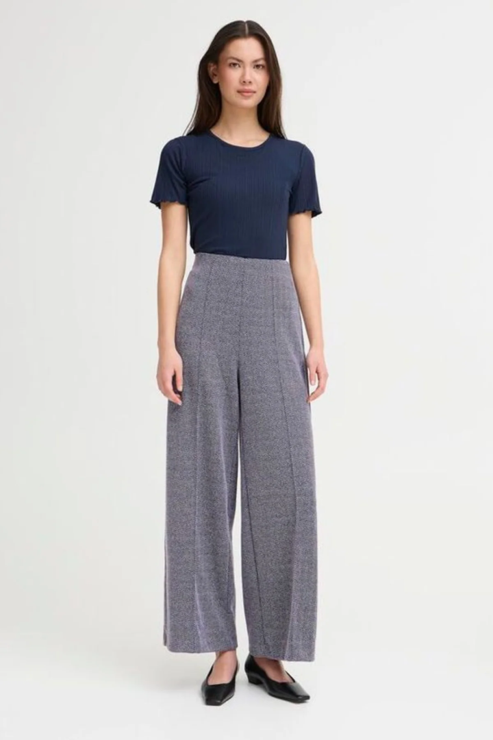 Elevate your everyday wardrobe with the Kate Jacquard Pants in striking Patriot Blue Herringbone. Crafted from a premium blend of polyester, viscose, and elastane, these pants offer both comfort and durability. The elastic waist provides a relaxed fit, while the wide-leg silhouette creates an effortlessly chic look that flatters all body types. Perfect for transitioning from office to weekend, these versatile trousers deliver style without compromise.
