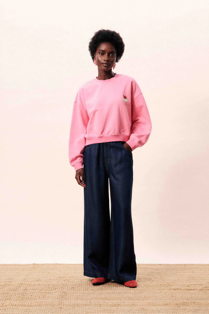 Introducing the Tamise Sweatshirt—your new go-to layer for effortless comfort. Crafted from soft pink cotton, this relaxed-fit sweatshirt features a charming embroidered motif on the left chest that adds a subtle touch of personality. The ribbed crew neck, elasticated cuffs, and hem ensure a secure, flattering fit that moves with you throughout your day. Perfect for casual outings or cosy evenings at home, this versatile piece is designed to become a beloved staple in your wardrobe.