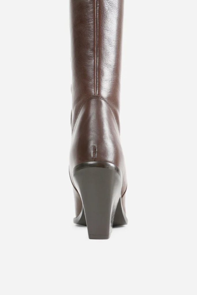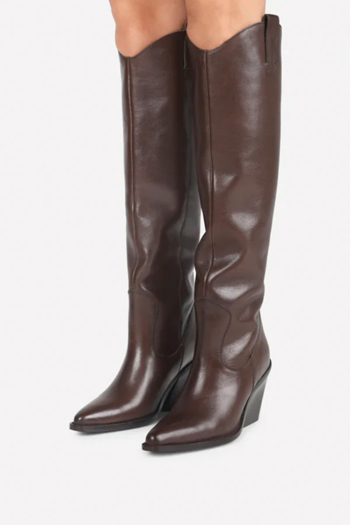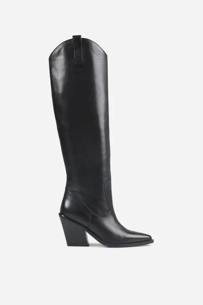 The New-Kole Western High Boot combines durability with comfort, crafted from 100% cow leather for a sturdy upper and lined with soft sheep leather for a gentle touch inside. Featuring a 9 cm block heel, these boots provide stable support and an elevated look without the need for closures. The 100% Tunit outsole ensures lasting wear, while the non-removable sheep leather insock adds cushioning for extended comfort. Perfect for those seeking stylish, reliable boots with a supportive fit.