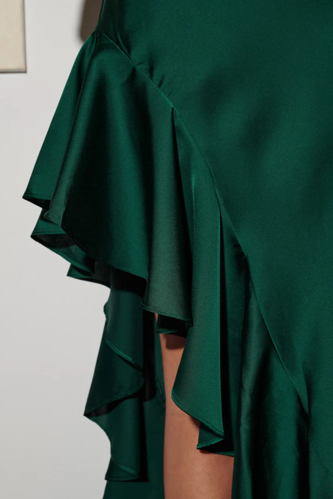 The Ana Satin Midi Dress combines bias-cut satin with graceful asymmetric ruffles for a fluid, elegant silhouette. Its subtle shine and carefully crafted design offer effortless glamour, perfect for moments when you want to look impeccably stylish without appearing overdone. Finished in a rich, artful shade, this dress brings timeless refinement to any occasion.