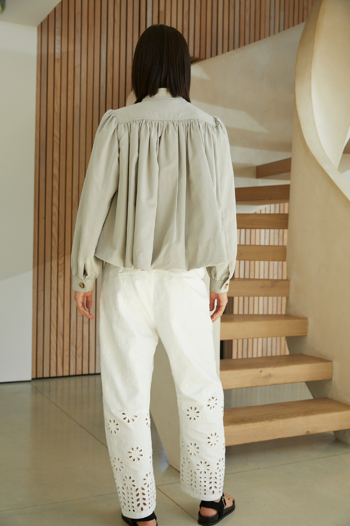 The Arnika Short Jacket combines contemporary style with playful design details. Crafted in a sophisticated grey tone, this piece features distinctive balloon sleeves that add movement and visual interest to your everyday wardrobe. Perfect for layering over dresses or pairing with trousers, the structured silhouette offers a flattering fit while the voluminous sleeves make a subtle fashion statement. Ideal for transitional seasons, this jacket effortlessly elevates casual and smart-casual looks.