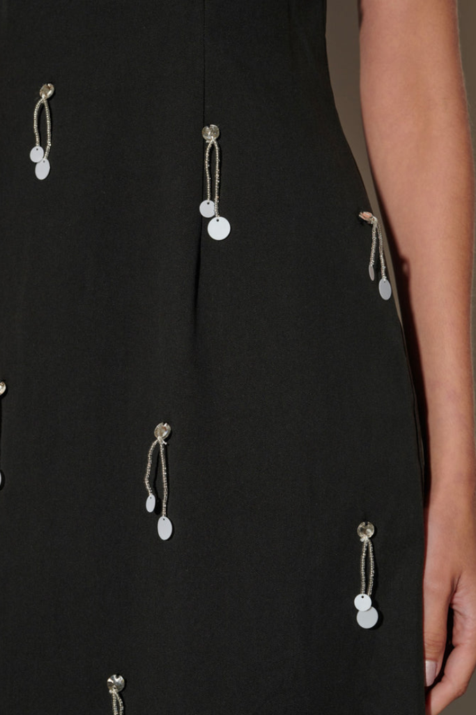The Augusta Embellished Midi Dress features a stunning column of sequins that catch the light beautifully, making you shine effortlessly at any event. Its elegant and elongated silhouette offers a refined simplicity that commands attention with subtle daring. Perfect for making a memorable impression, this dress embodies grace and confidence for your special occasions.