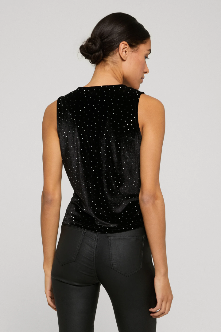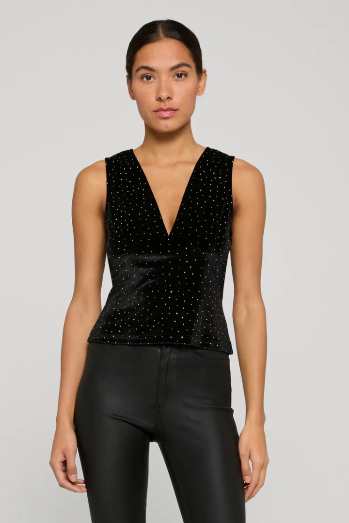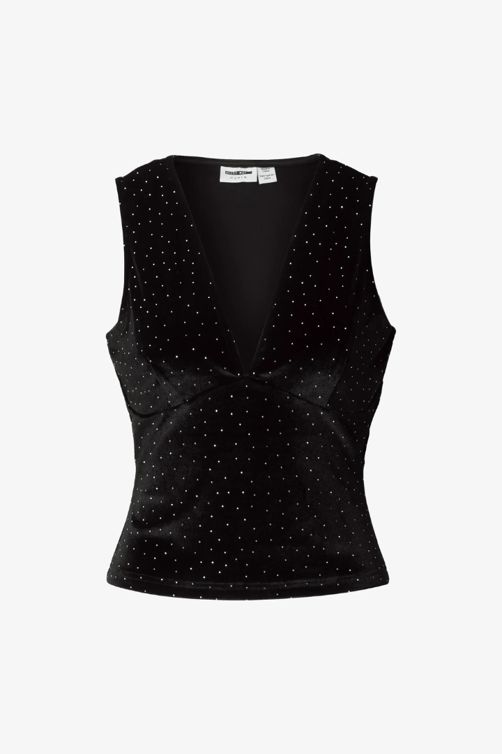 Elevate your wardrobe with this stunning velvet vest, featuring a flattering V-neckline and eye-catching rhinestone embellishments. The luxurious velvet fabric drapes beautifully while the sparkling stone details add a touch of glamour to any outfit. Perfect for layering over your favourite pieces, this versatile vest transitions effortlessly from casual to dressy occasions. Whether you're heading out for a special event or want to add some sparkle to your everyday look, this piece celebrates your unique style with confidence and flair.