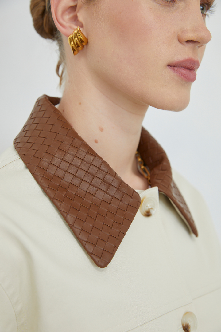 The Elira Jacket combines understated elegance with practical style. Crafted in soft beige, this versatile piece features rich brown leather detailing on the collar and cuffs, adding a touch of sophistication and durability. Perfect for layering across seasons, it transitions effortlessly from casual to polished looks. The leather accents provide structure and visual interest while the beige base keeps it easy to pair with your existing wardrobe. A timeless investment piece that works as hard as you do.