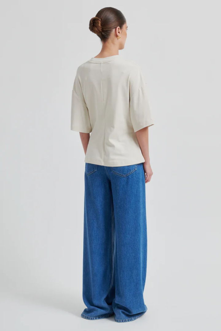 Elevate your everyday wardrobe with this versatile tee crafted from a luxuriously soft lyocell-cotton blend. The Enora features a relaxed round neckline, dropped shoulders, and short sleeves for effortless comfort. A gathered side detail and detachable gold brooch add a touch of sophistication, allowing you to style it for any occasion. The regular fit and stretchy fabric ensure a flattering silhouette all day long.