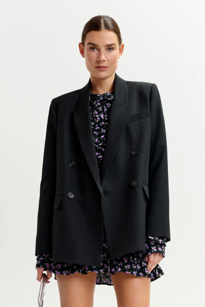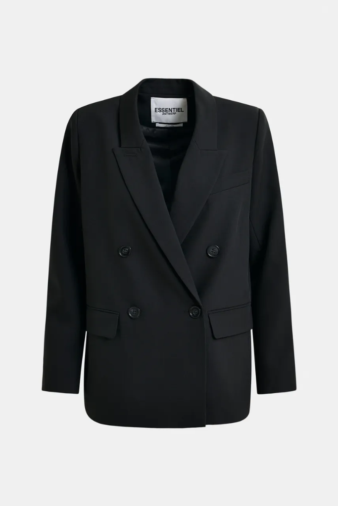 The Imure Blazer offers a relaxed fit with a straight cut, combining classic style with subtle modern details. Its double-breasted buttons and padded shoulders create a polished, structured look, while the flap and chest pockets add practical charm. Fully lined for comfort, it is crafted from 95% recycled polyester and 5% elastane, making it both sustainable and flexible for all-day wear. This blazer is an ideal choice for those seeking effortless sophistication with a mindful touch.