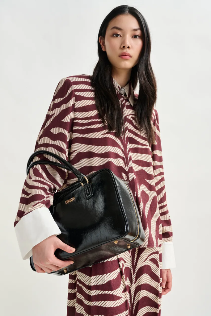 The IRemy Shiny Zipped Bag combines elegance and functionality with its high-shine laqué-style fabric and polished gold-tone hardware. Designed for everyday use, it features a secure zip fastening, an adjustable and removable crossbody strap, and protective bag feet to keep it looking pristine. Inside, a lined compartment with a zipped pocket helps keep your essentials organized and within easy reach. This bag offers a stylish, practical solution to accompany you throughout your day with confidence.