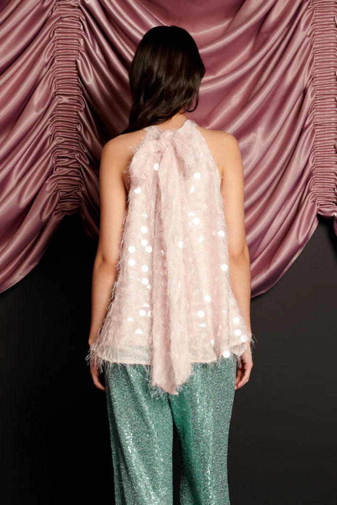 The Teese Sequin Halterneck Top brings sparkle and fun to your wardrobe with its loose, luminous design. Perfect for nights out, this top catches every light and movement, making you the highlight of the party. Pair it effortlessly with the Disco Darling Sequin Trousers to complete a captivating dance floor look that shines wherever you go.