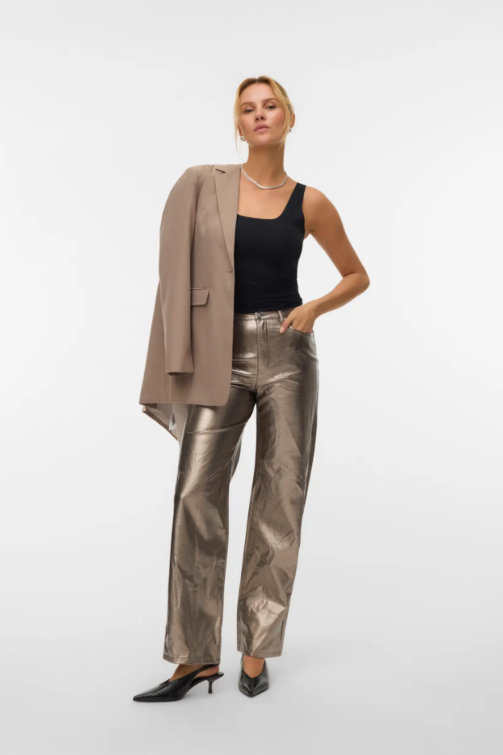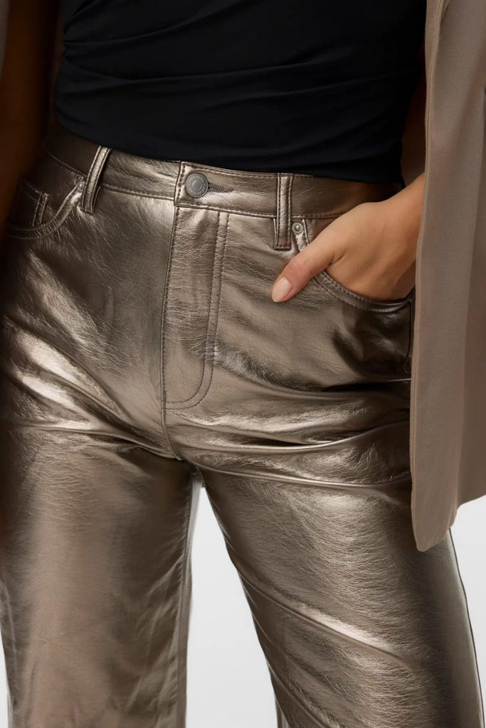 Make a statement with the Tessa High Rise Wide Vinyl Pants—where bold volume meets contemporary style. These wide-leg jeans feature a flattering high-rise waist and eye-catching coated finish for that coveted shiny aesthetic. Practical button and zip fastening, paired with front and back pockets, keeps functionality at the forefront. Layer with a fitted top to define your silhouette, or embrace the relaxed vibe with an oversized shirt. Perfect for those who aren't afraid to own their space and express their individuality through fashion.